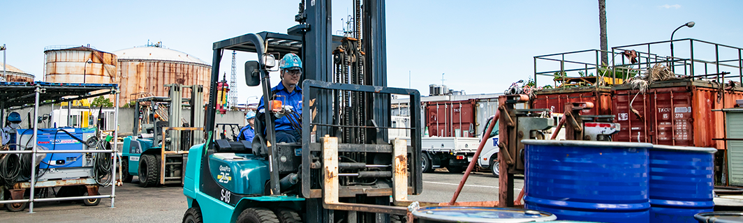 工務サービス部は、ENEOS堺製油所および全国の製油所・石油化学工場において、タンクやプラント設備の保守・清掃・工事を担当しています。
